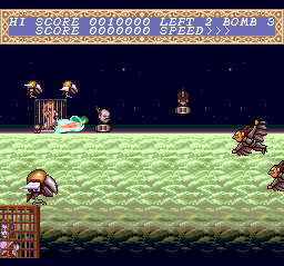 Like other representatives of the genre, Chō Aniki puts the player in control of a flying avatar that must clear out several levels of enemies while avoiding their firing patterns and attacks, as well as collecting power-ups that increase firepower, life, etc.