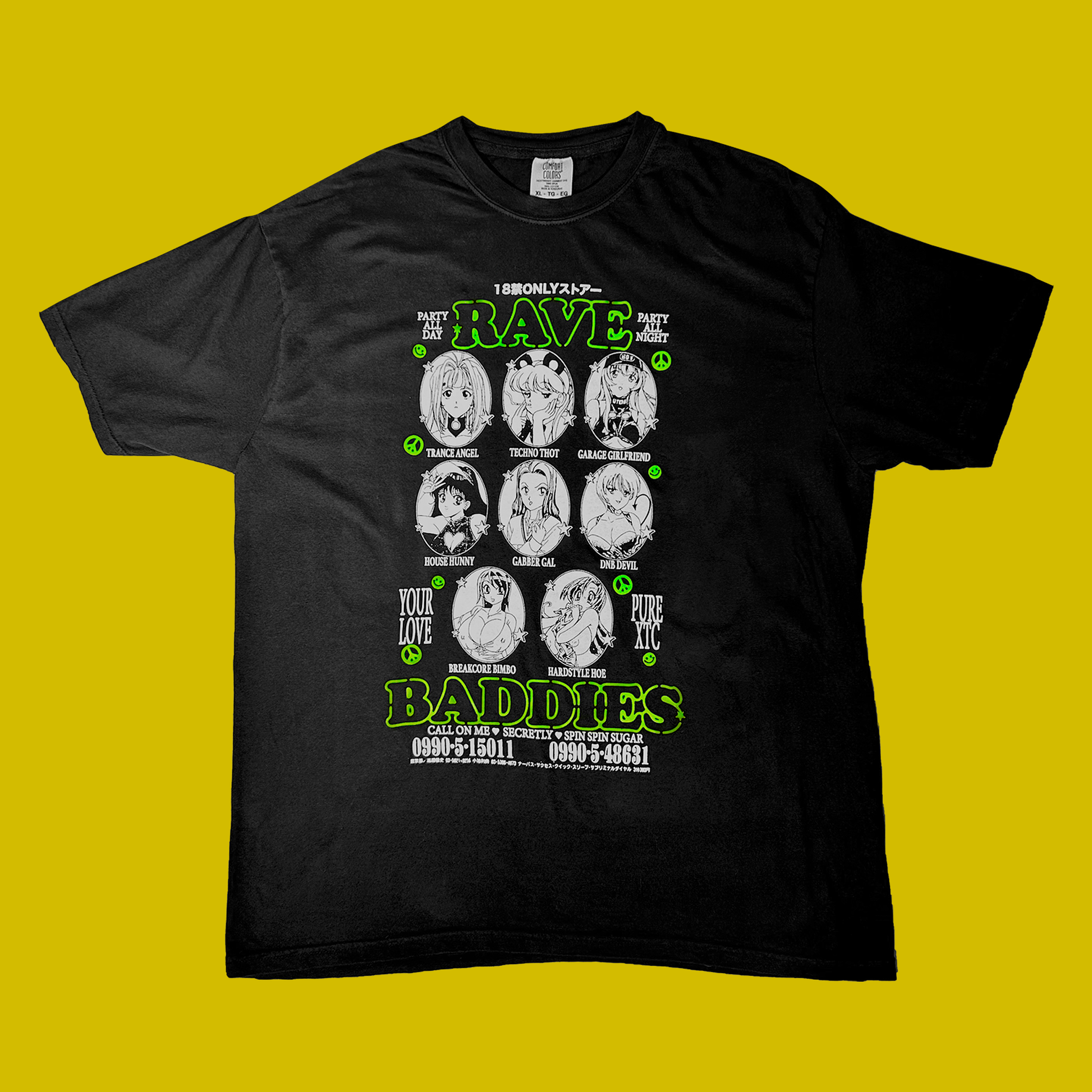 Screen-printed on a uni-sex Comfort Colors® 1717 black t-shirt.