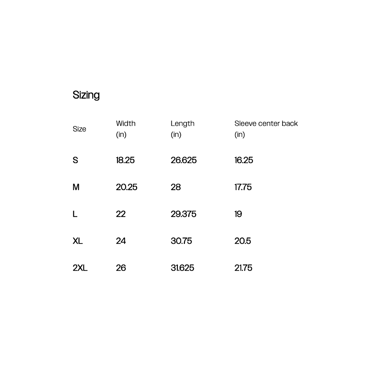 | SIZE | BODY LENGTH | CHEST | SLEEVE LENGTH |