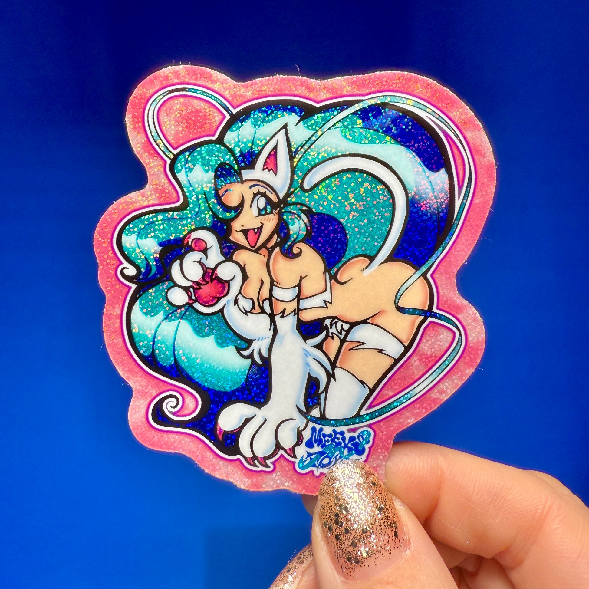 3” micro glitter vinyl sticker by local tattoo artist, Meeks & Poke!