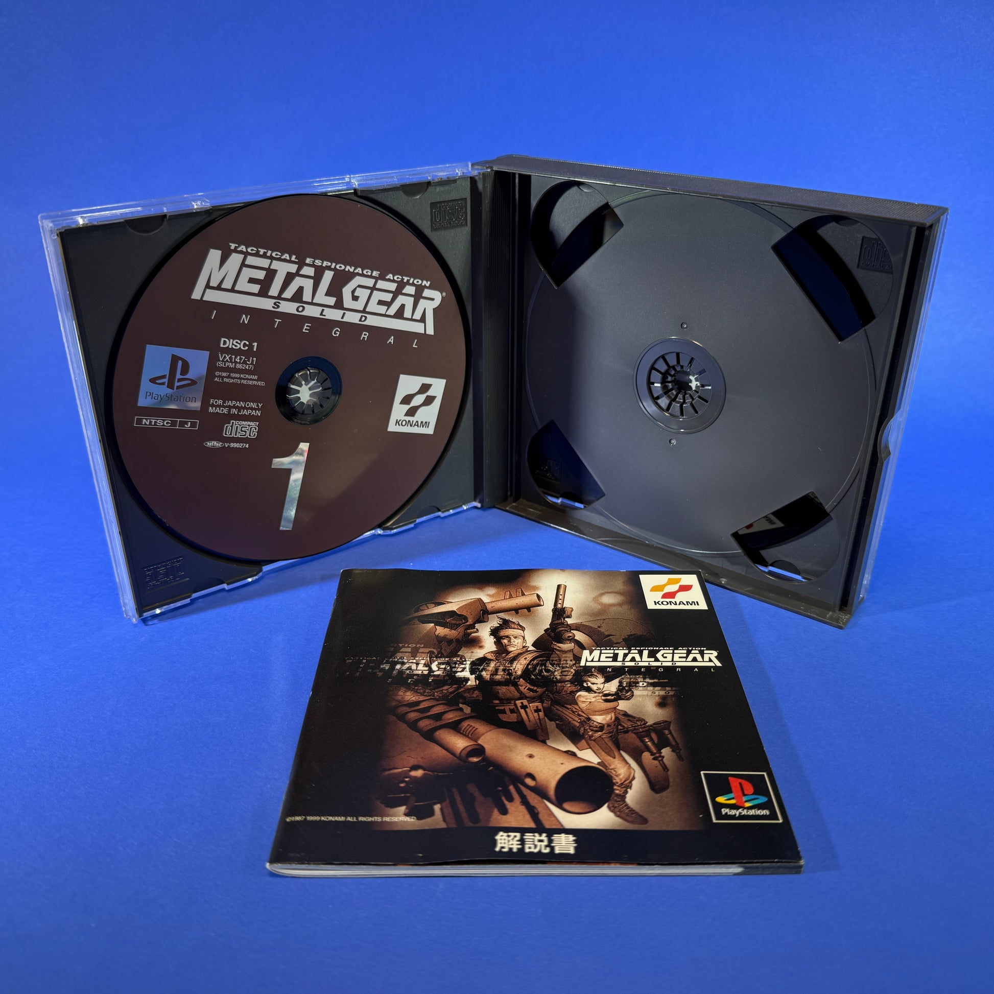 Metal Gear Solid: Integral is an expanded version of the original Metal Gear Solid first released for the PlayStation in the NTSC-J region in 1999. It includes most of the changes and additions that were made in the NTSC-U/C version of the original Metal Gear Solid, as well as new features and changes of its own, including a third disc consisting almost entirely of VR training missions dubbed the "VR Disc."