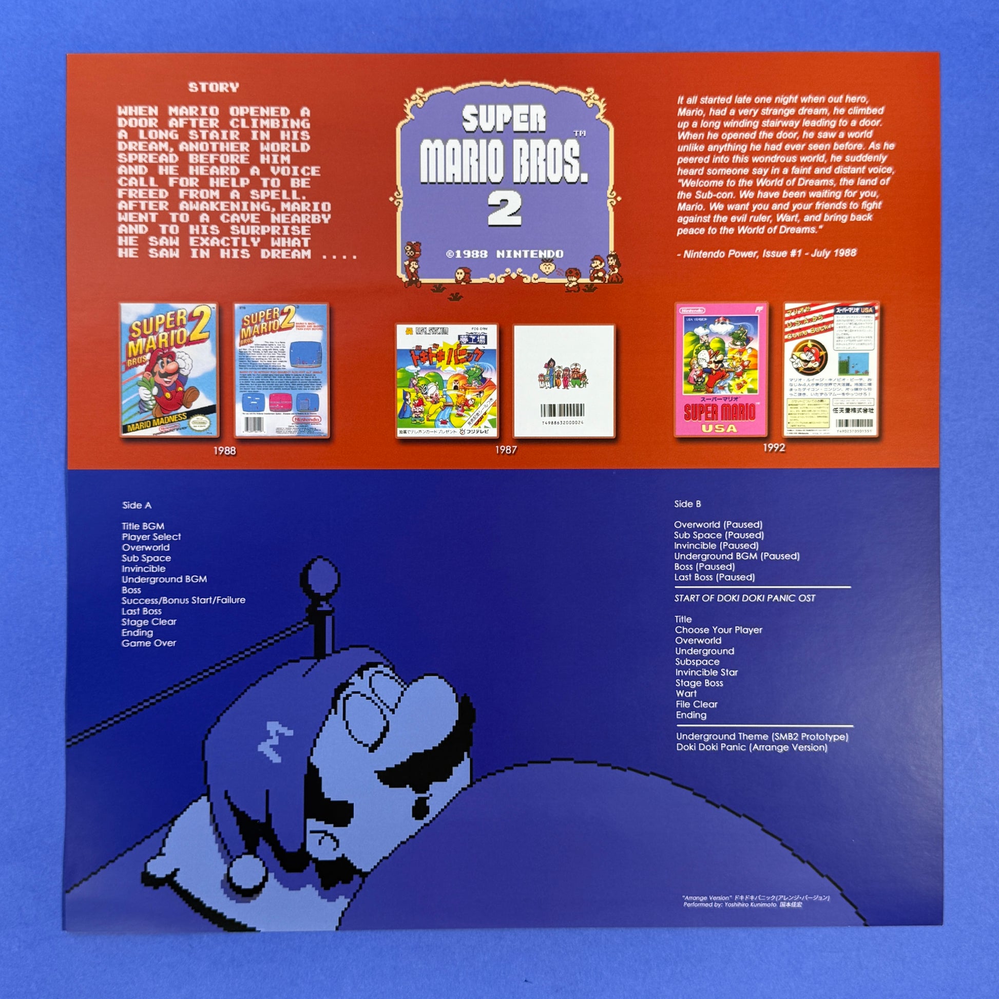 This is a single LP featuring music from the NES game. 18 tracks to relive including the Doki Doki Panic arrangement which the game was based off of! There’s also an added track featuring prototype music.