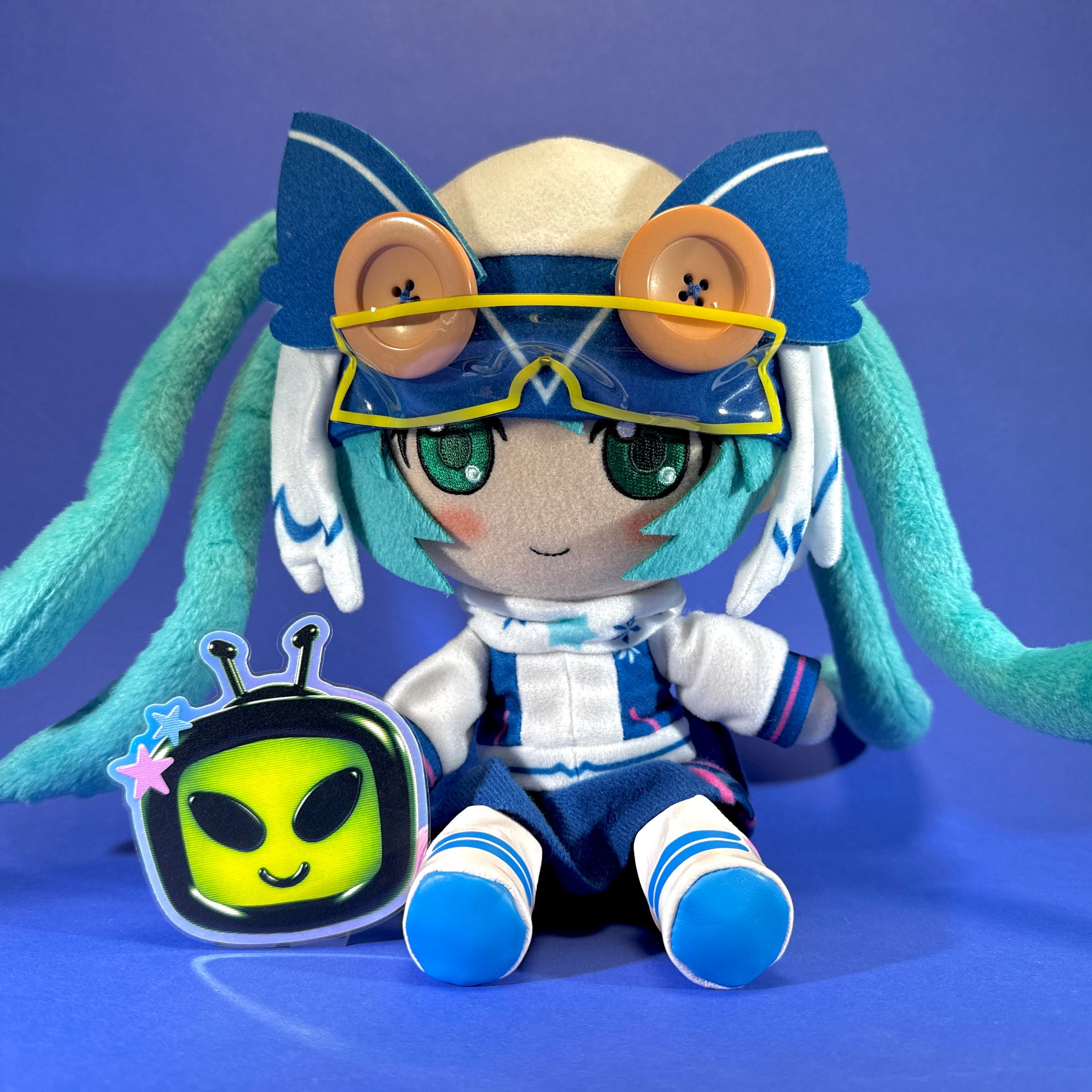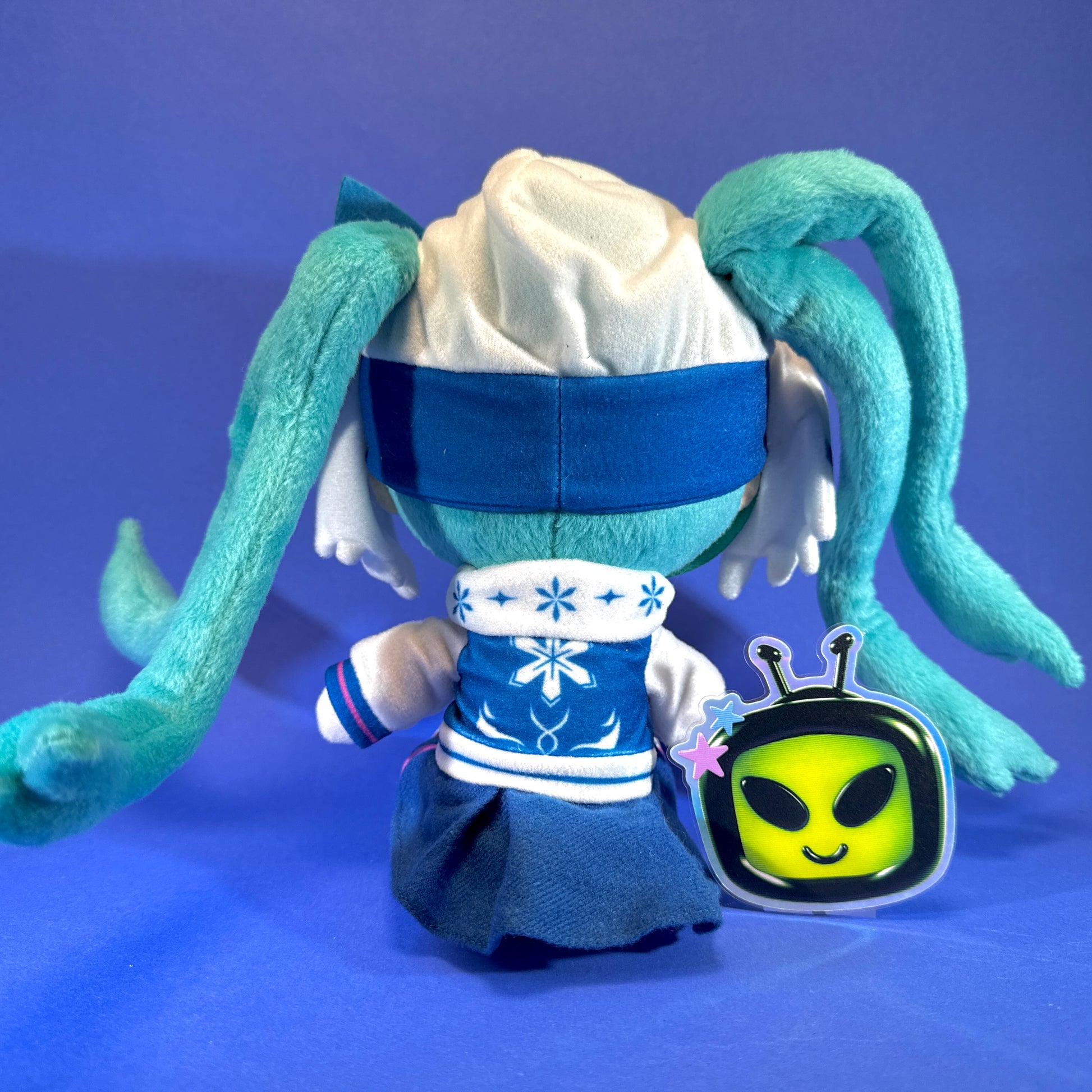 - Design Details: Miku is featured in an adorable snowy costume, complete with an owl-themed hat featuring owl eyes and ears, and her signature teal twin tails which are wired and can be fixed to position. The plush is designed to be sitting, perfect for display on a shelf, desk, or bed.